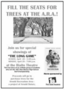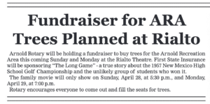 Arnold Rotary will be holding a fundraiser to buy trees for the Arnold Recreation Area this coming Sunday and Monday at the Rialto Theater. First State Insurance will be hosting “The Long Game” — a true story about the 1957 New Mexico High School Championship and the unlikely group of students who won it.